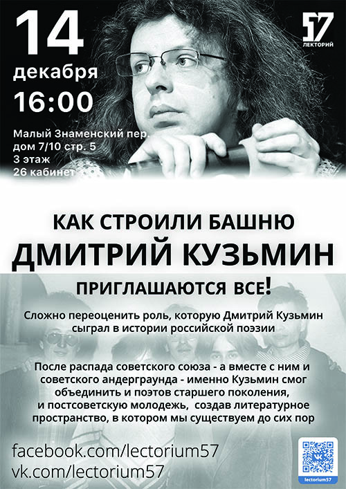 Анонс Лектория: Дмитрий Кузьмин, “Как строили башню”, 14 декабря