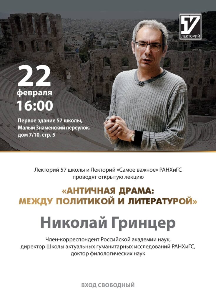 Анонс Лектория: Николай Гринцер, «Античная драма», 22 февраля